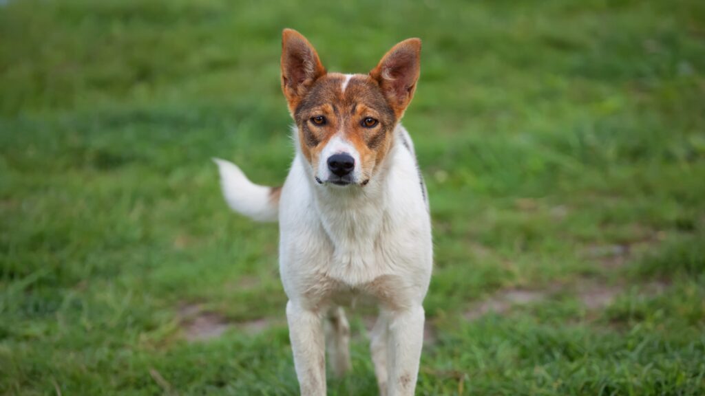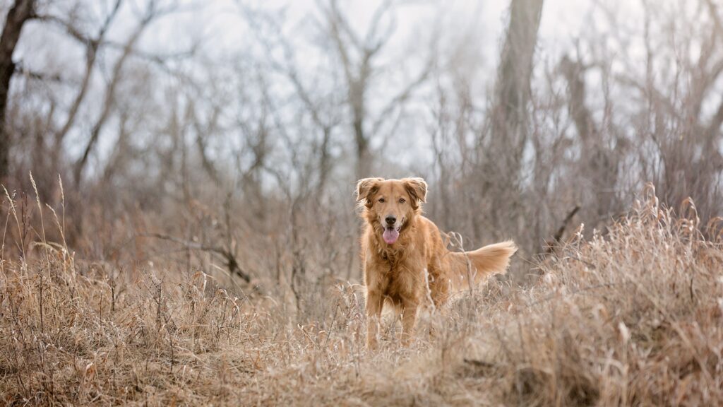 - Ogon podniesiony do połowy, równolegle do tułowia – Ułożenie i machanie ogonem w tej pozycji, komunikuje średni poziom podniecenia. Ułożony w ten sposób ogon nie oznacza, że pies nie może zaatakować. Należy obserwować całe ciało. Przyjaźnie nastawiony pies będzie rozluźniony, otwierał ochoczo pyszczek i patrzył na nas z przymrużeniem.