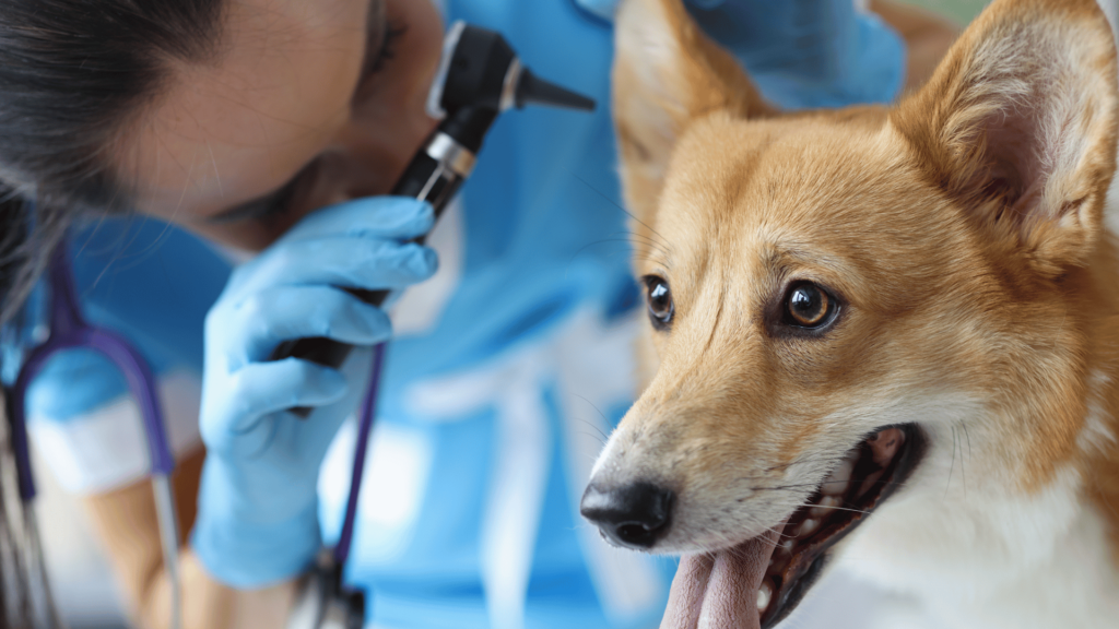 Weterynarza za pomocą szczegółowego wywiadu oraz dokładnego badanie fizykalnego – psu często należy podać leki sedatywne i wykonać badanie za pomocą otoskopu.