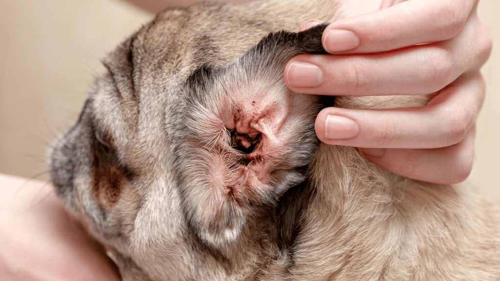 Pies może odczuwać swędzenie i ból, Choroba może dotyczyć jednego lub obu uszu i wystąpić nagle lub stopniowo się nasilać.