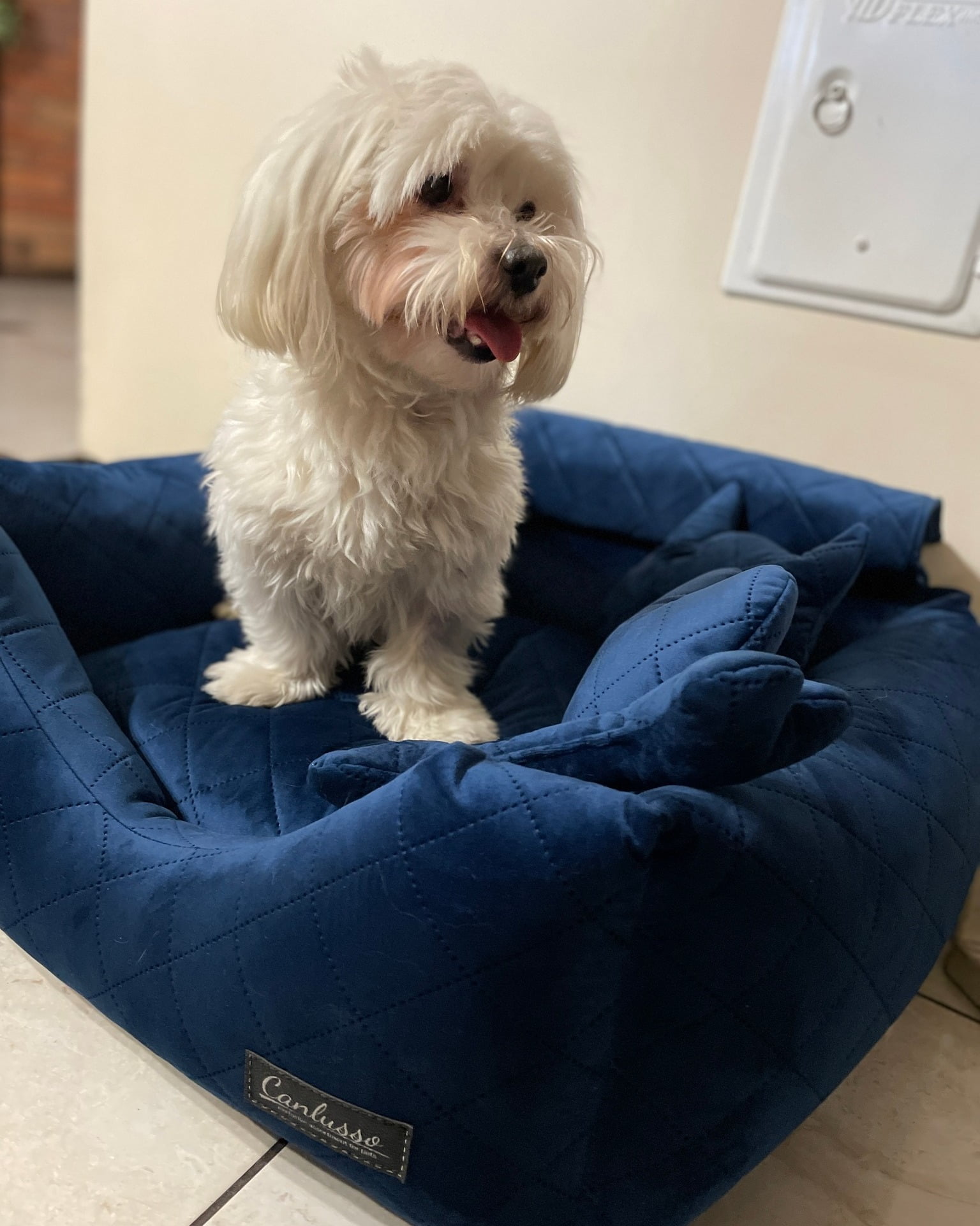 Granatowe legowisko linii elegant z pewnością spełni wymagania nawet najbardziej bezkompromisowych zwierzaków. To idealny wybór zarówno pod względem estetycznym jak i pod względem utrzymania. Ręcznie szyte posłanie wykonane jest z grubego, wytrzymałego weluru o gramaturze ponad 390 g. Ten poliestrowy materiał jest odporny na ścieranie, rozciąganie i uszkodzenia mechaniczne dzięki czemu łatwo i szybko wypierzesz obszycie w pralce. Granatowy welur charakteryzuje się miłą w dotyku, ledwie wyczuwalną aksamitną strukturą oraz naturalnością. Wnętrze poduszki stworzone jest z antyalergicznej kulki silikonowej odpowiedniej nawet dla najdelikatniejszych czworonogów. Dzięki modnemu pikowaniu legowisko sprawia wyjątkowe wrażenia estetyczne, a ty możesz być pewny, że żaden gość nie przejdzie obok niego obojętnie! Całość dopełniają poduszeczki dołączone do każdego zestawu.