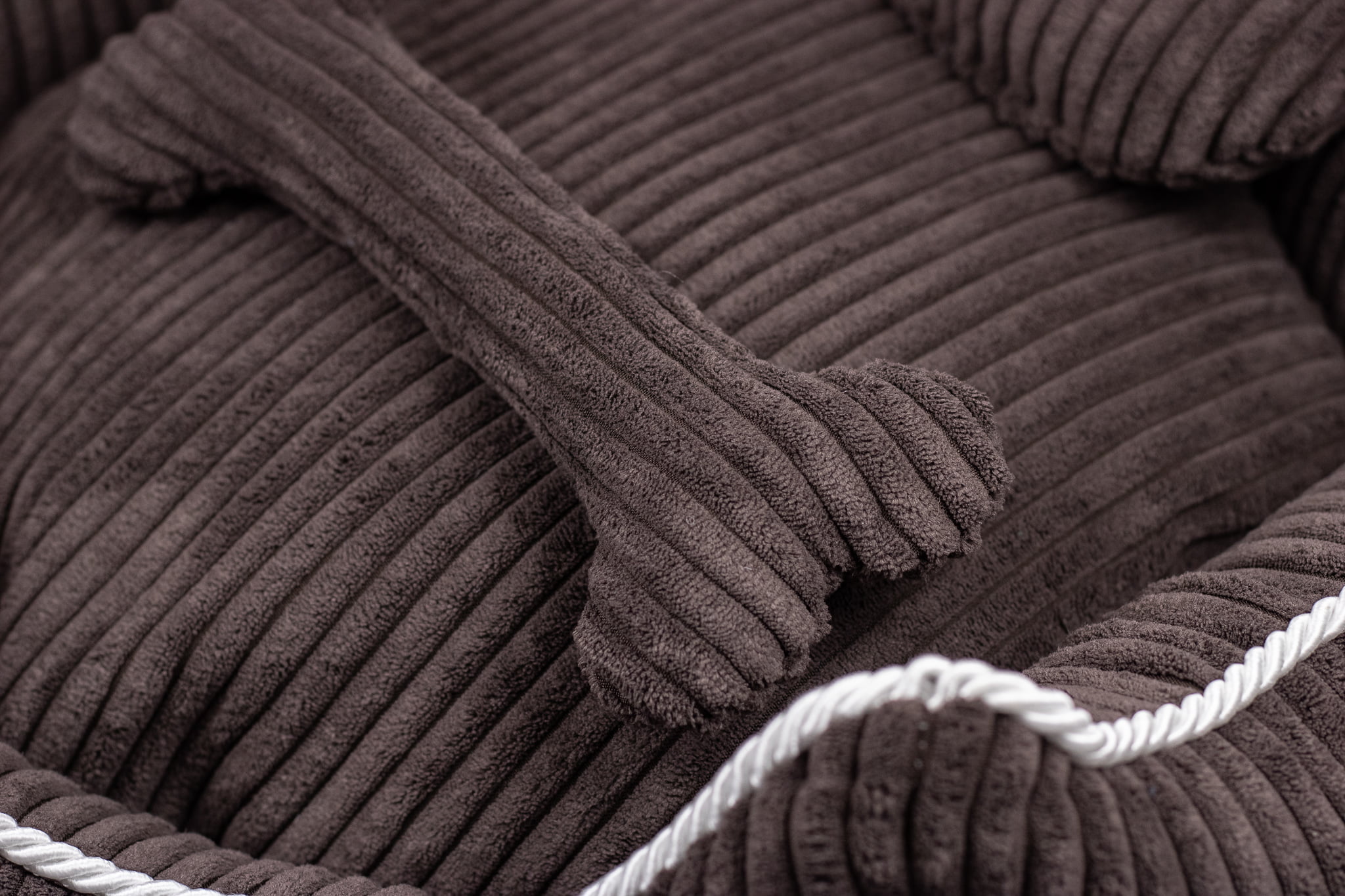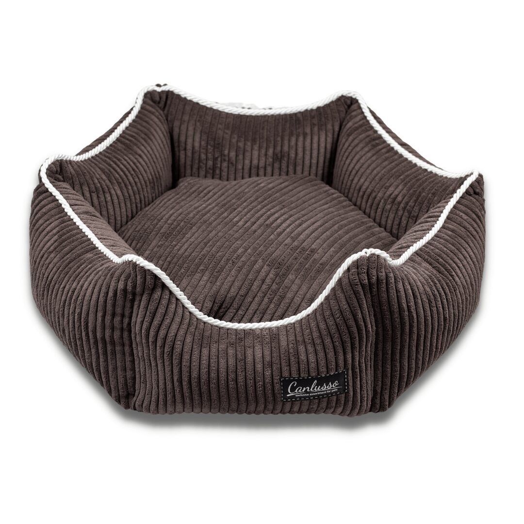 Ręcznie szyte, brązowe legowisko z linii Earth, to połączenie eleganckiego wyglądu z najlepszymi cechami, idealnego posłania dla psa. Tkanina, która została użyta do jego uszycia, to wysokiej klasy materiał tapicerski typu SOFT TOUCH. Jego niezwykłą miękkość zapewnia długi włos o szerokości około 10 mm. Materiał pomimo swojej delikatności jest niezwykle wytrzymały ( ścieralność do 100 tysięcy cykli) i odporny na wchłanianie wody. Wypełnienie poduszki oraz boków to kulka silikonowa – materiał hipoalergiczny. Dzięki zastosowaniu systemu zamków, każdy element legowiska ma ściągany pokrowiec – który można wyprać w pralce w temperaturze 30 stopni. Całość dopełniają urocze poduszeczki w 3 kształtach, dołączone do każdego legowiska Canlusso. Produkt spełnia wszystkie potrzeby nawet najbardziej wybrednych psów, jednocześnie ciesząc oko ich opiekunów.