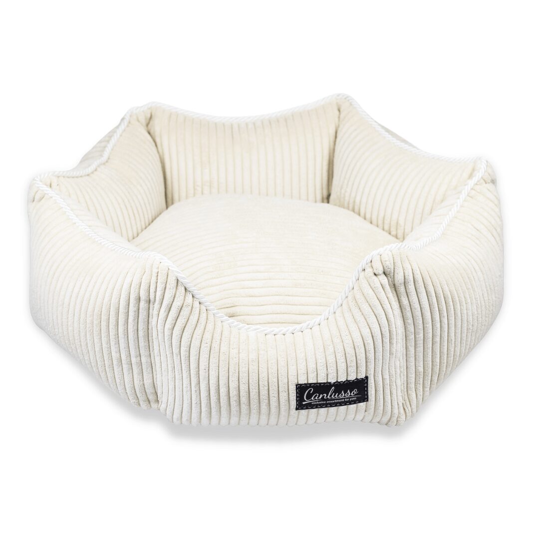 Ręcznie szyte, w kolorze ecru legowisko z linii Earth, to połączenie eleganckiego wyglądu z najlepszymi cechami, idealnego posłania dla psa. Tkanina, która została użyta do jego uszycia, to wysokiej klasy materiał tapicerski typu SOFT TOUCH. Jego niezwykłą miękkość zapewnia długi włos o szerokości około 10 mm. Materiał pomimo swojej delikatności jest niezwykle wytrzymały ( ścieralność do 100 tysięcy cykli) i odporny na wchłanianie wody. Wypełnienie poduszki oraz boków to kulka silikonowa – materiał hipoalergiczny. Dzięki zastosowaniu systemu zamków, każdy element legowiska ma ściągany pokrowiec – który można wyprać w pralce w temperaturze 30 stopni. Całość dopełniają urocze poduszeczki w 3 kształtach, dołączone do każdego legowiska Canlusso. Produkt spełnia wszystkie potrzeby nawet najbardziej wybrednych psów, jednocześnie ciesząc oko ich opiekunów.