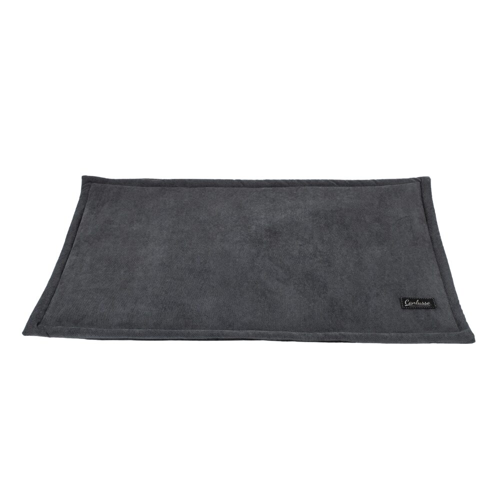 Mata dla psa Canlusso w kolorze grafitu to 3 warstwowy, ręcznie szyty produkt o wielu zastosowaniach. Materiał służący do jej wykonania to najwyższej klasy tkanina polisterowa posiadająca certyfikat OEKO – TEX standard 100. Jest bardzo przyjemna w dotyku, antyalergiczna i świetnie wyglądająca. Środek maty stanowi wypełnienie z puszystej owaty (stosowanej między innymi w produkcji kurtek) nadające jej miękkość i zapewniające komfort cieplny psu. podstawa to trwała i wodoodporna kodura – świetnie izolująca od podłoża. Dzięki starannemu uszyciu, nasze maty są bardzo wytrzymałe i mogą być stosowane na zewnątrz jak i w domach. Dzięki tkaninom tapicerskim używanym przy ich produkcji, maty cechują się łatwością w utrzymaniu czystości. Zalecamy pranie w pralce w temperaturze 30 stopni.