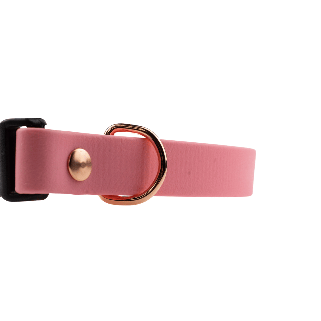 Różowa obroża dla psa na wymiar wykonana z oryginalnego materiału BioThane, którego właściwości sprawiają, że nadaje się do ekstremalnych zadań a jednocześnie wygląda bardzo elegancko. Materiał wytrzymuje setki kilogramów obciążenia. Taśmy BioThane nie absorbują zapachów, uniemożliwiają rozwój pleśni i grzybów, są wodoodporne i bardzo łatwe w czyszczeniu. Miękki i elastyczny materiał nie zmienia swoich właściwości co ma miejsce w tanich taśmach PVC. Silikonowe emblematy z logiem marki i nazwą linii, to podkreślenie wyjątkowości produktu.