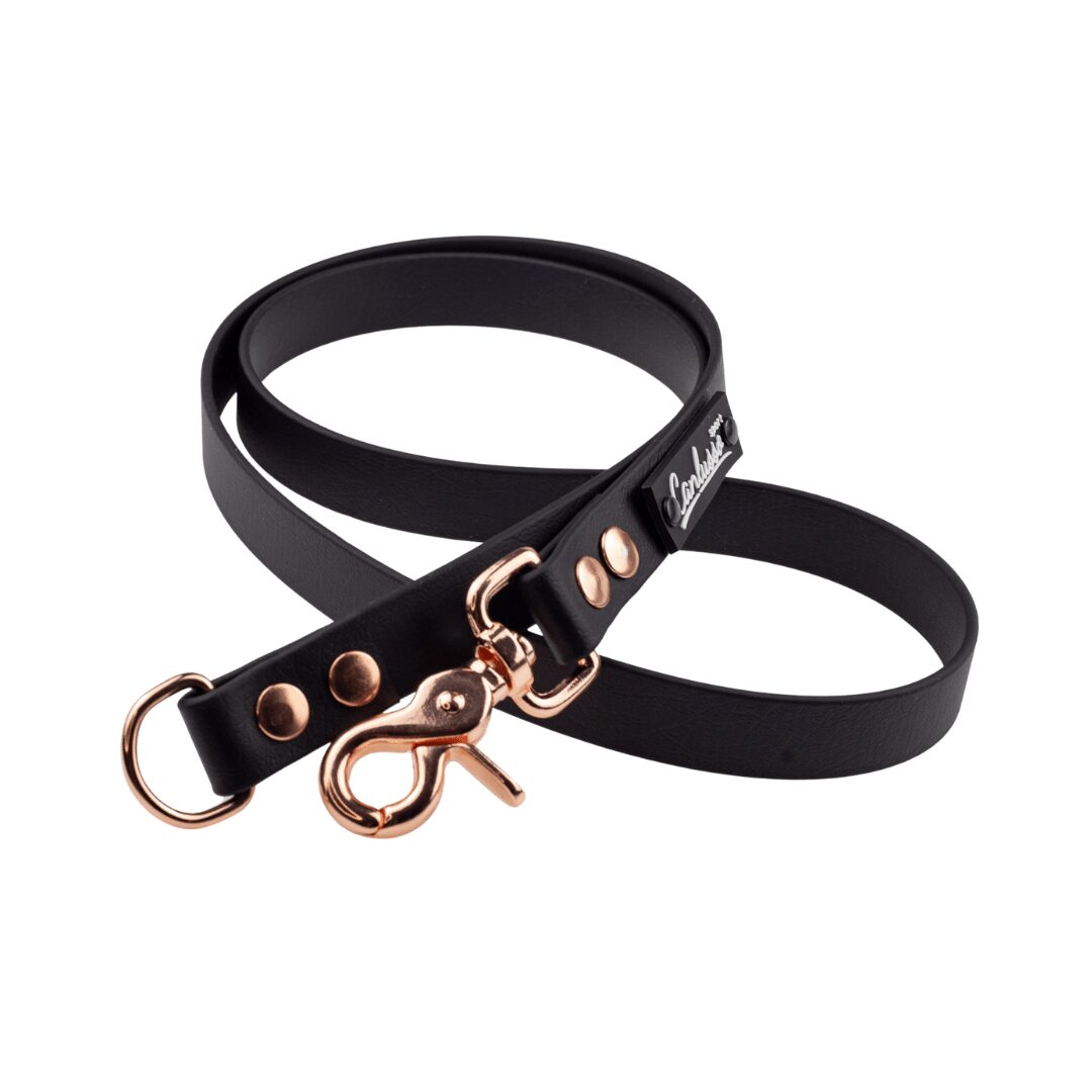 Czarny przedłużacz do smyczy dla psa wykonana z oryginalnego materiału BioThane, którego właściwości sprawiają, że nadaje się do ekstremalnych zadań a jednocześnie wygląda bardzo elegancko. Materiał wytrzymuje setki kilogramów obciążenia. Taśmy BioThane nie absorbują zapachów, uniemożliwiają rozwój pleśni i grzybów, są wodoodporne i bardzo łatwe w czyszczeniu. Miękki i elastyczny materiał nie zmienia swoich właściwości co ma miejsce w tanich taśmach PVC. Silikonowe emblematy z logiem marki i nazwą linii, to podkreślenie wyjątkowości produktu