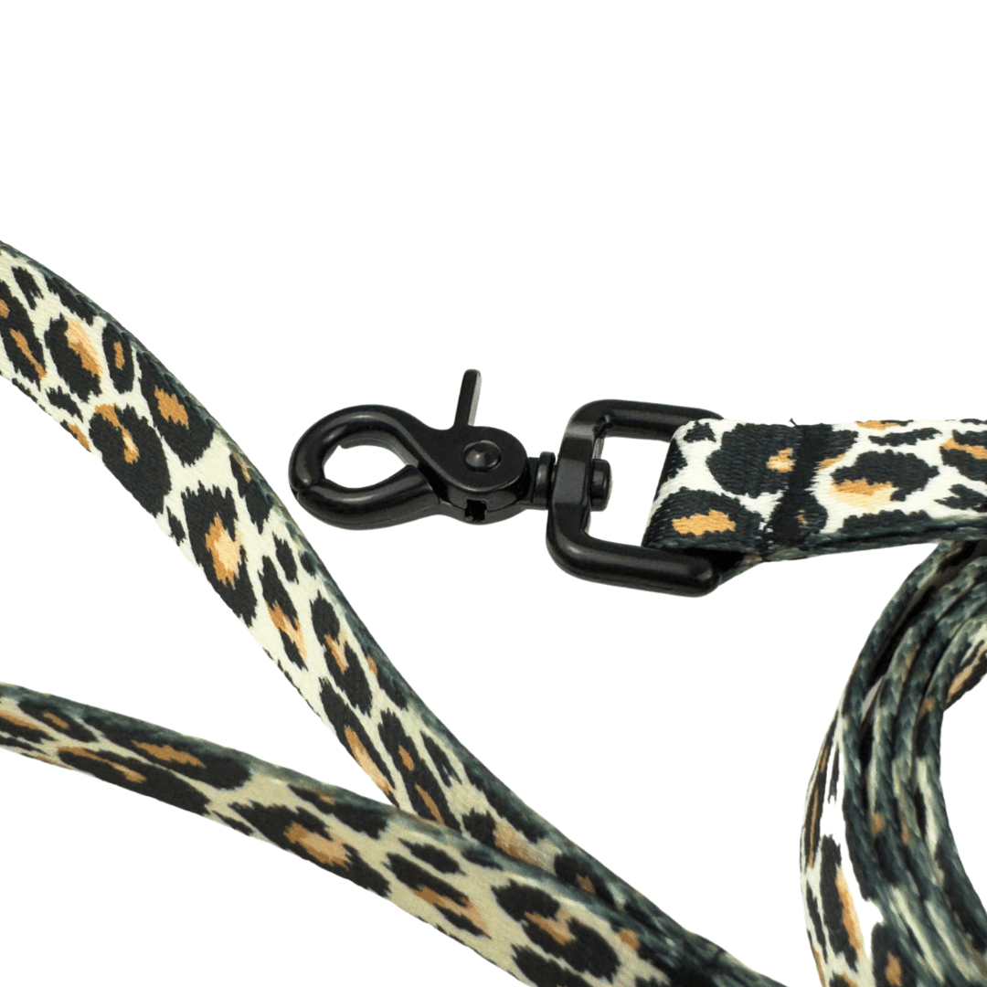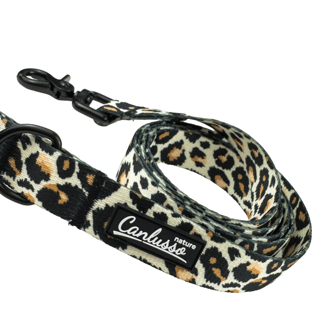 Smycz miejska dla psa Leopard, to ręcznie szyty produkt, który łączy ze sobą funkcjonalność oraz design. Dzięki zastosowaniu miękkiej taśmy nośnej premium, osiągnięto wyrazisty i kolorowy nadruk. Dodatkowe półkole pozwala na zawieszenie ekwipunku, najczęściej zabieranego na spacer. Szwy typu zygzak, to pewność wytrzymałości a duży karabińczyk spustowy, sprawia, że pies jest pod kontrolą w każdej sytuacji. Silikonowe logo z nazwą linii podkreśla wyjątkowość produktu.
