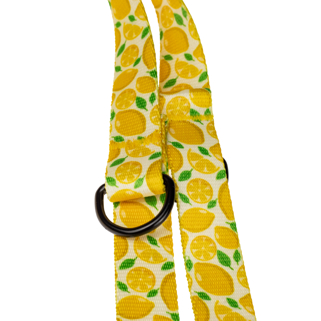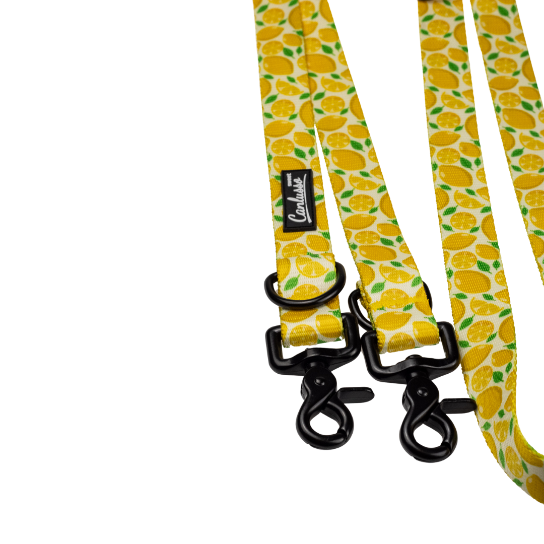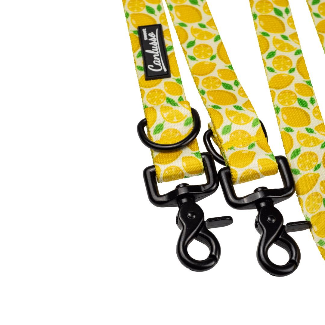 Smycz przepinana dla psa Lemon, to ręcznie szyty produkt, który łączy ze sobą funkcjonalność oraz design. Dzięki zastosowaniu miękkiej taśmy nośnej premium, osiągnięto wyrazisty i kolorowy nadruk. Dwa bardzo wytrzymałe karabińczyki spustowe, pozwalają na regulację długości smyczy oraz możliwość przepięcia jej przez ramię i prowadzenie psa bez użycia rąk. Szwy typu zygzak, to gwarancja wytrzymałości a duży karabińczyk spustowy, sprawia, że pies jest pod kontrolą w każdej sytuacji. Silikonowe logo z nazwą linii podkreśla wyjątkowość produktu.
